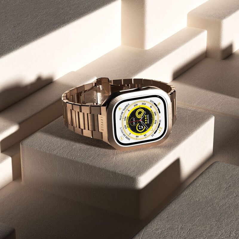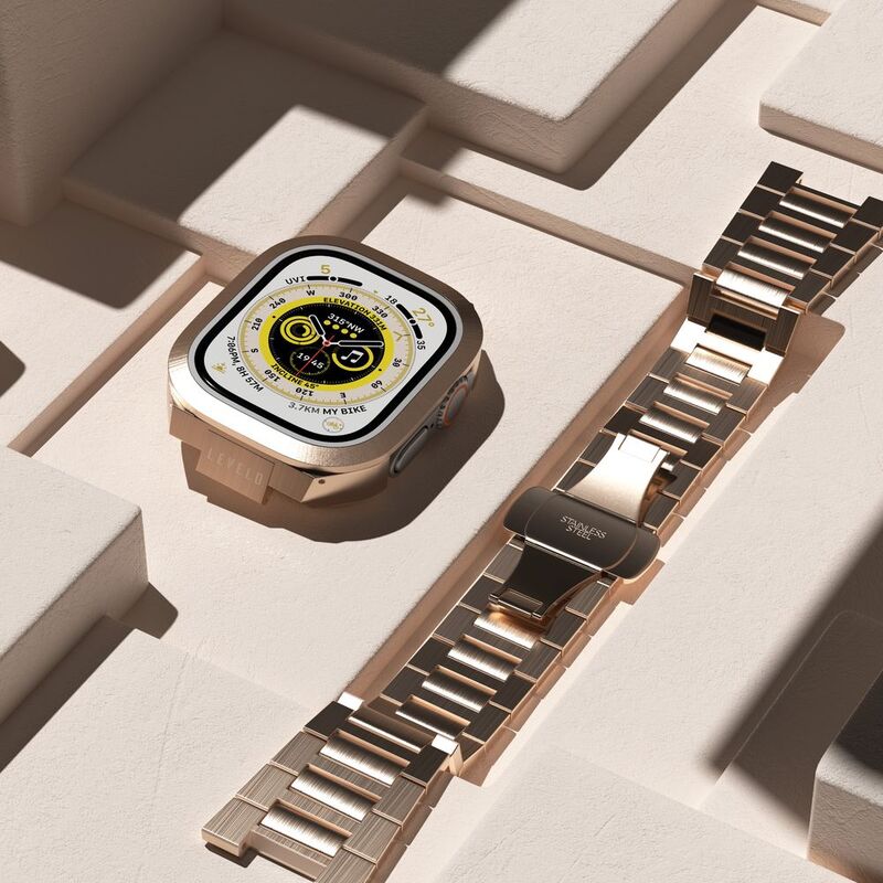 Levelo 49mm Royal Stainless Steel Strap and Bumper for Apple Watch Ultra - Rose Gold