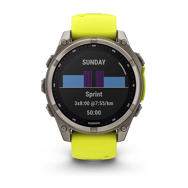 Garmin Fenix 8 47mm Solar Sapphire Titanium Smartwatch - Amp Yellow/Graphite Silicone Band
