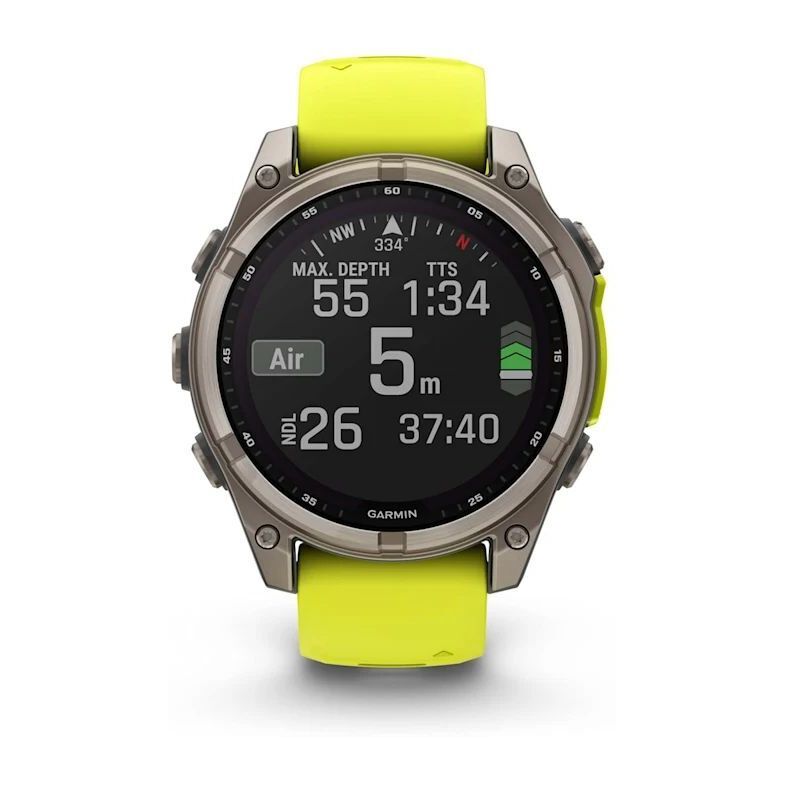 For serious athletes and adventurers who want to push beyond their limits, this premium multisport GPS smartwatch is built to perform — with advanced strength training features, dive capability, an internal speaker and mic for voice features, a built-in LED flashlight and up to 28 days of battery life with the Power Sapphire™ solar charging lens.