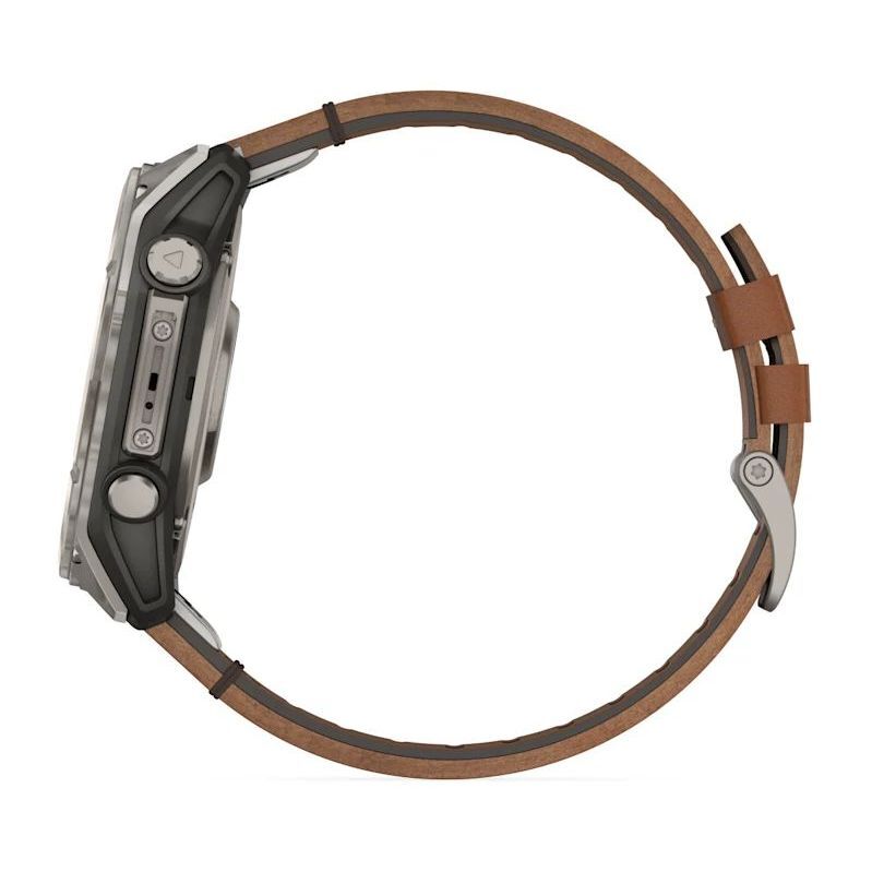 Garmin Fenix 8 51mm AMOLED Sapphire Bare Titanium Black Smartwatch - Chestnut Leather Band + Graphite Silicone Band