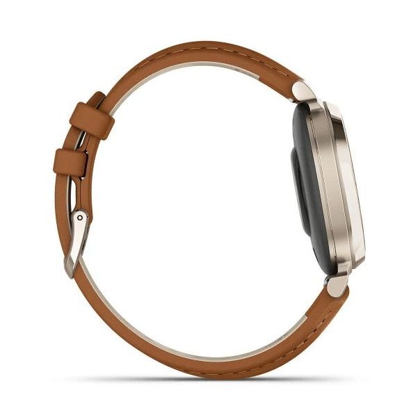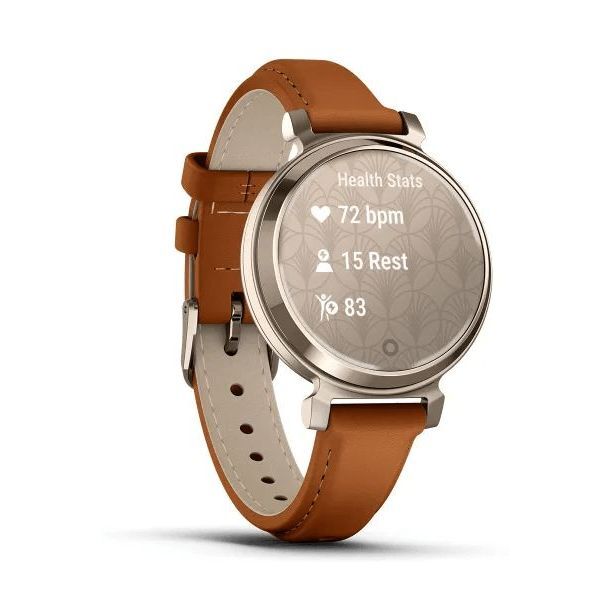 Garmin Lily 2 Classic Fitness Smartwatch - Cream Gold With Tan Leather Band