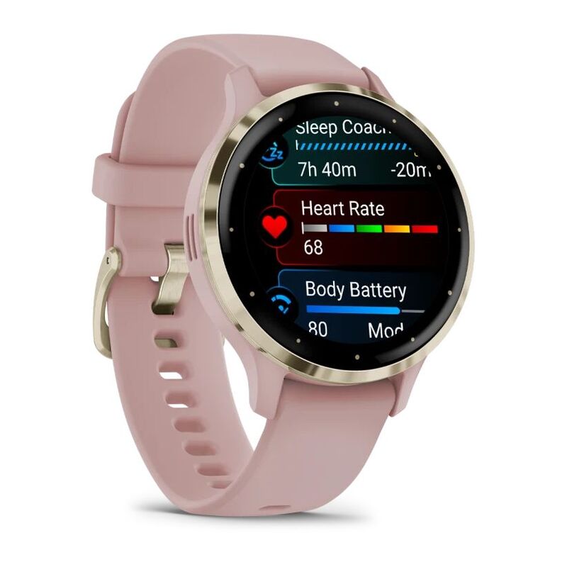 Garmin Venu 3S Fitness Smartwatch - Soft Gold Stainless Steel Bezel With Dust Rose Case And Silicone Band