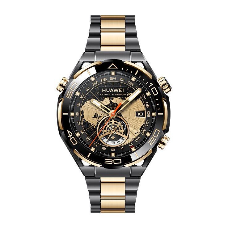 HUAWEI WATCH ULTIMATE DESIGN is your safe harbour in stormy seas, with its rudder-like black nanocrystal ceramic bezel and six 18K gold inlays, shining beacons guiding you through the night! Strap it round your wrist – it's ready to make a splash!