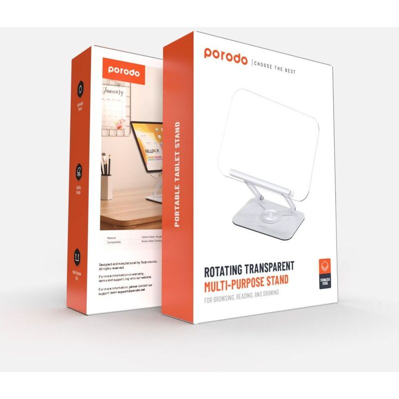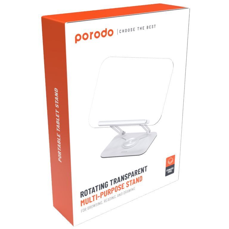 Porodo Rotating Transparent Multi-Purpose Stand - White