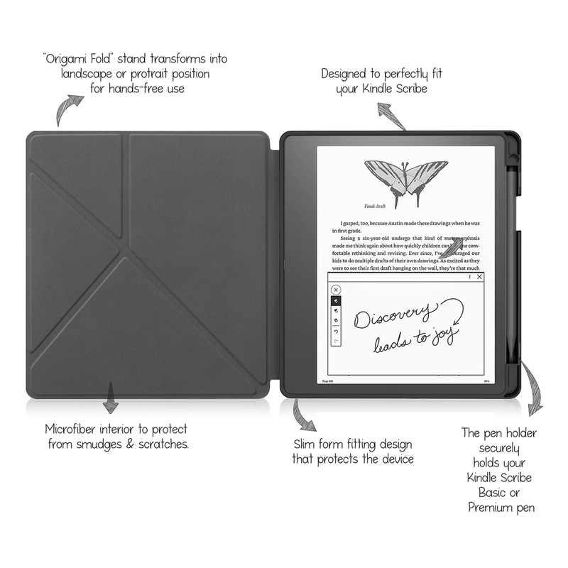 - The pen holder securely holds your Kindle Scribe Basic or Premium pen