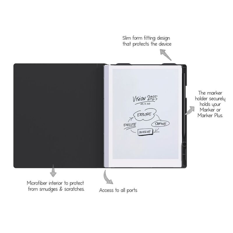 Dot Book Folio For ReMarkable 2 Premium Leather - Black