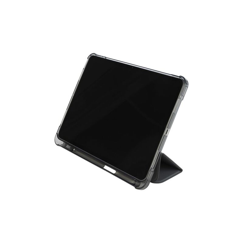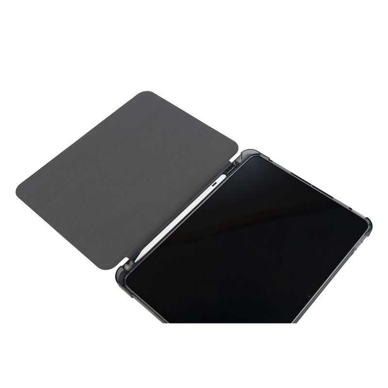 Ultra-protective cover for iPad Air 11" M2 (2024), part of which is made of recycled plastic. The front cover features a satin-effect material and converts into a convenient stand. The anti-shock rear shell is made from transparent double-injected polycarbonate bordered with TPU for easier iPad insertion. The Satin cover has an internal compartment to store your Apple Pencil and an external holder for charging it. Military standard test approved.