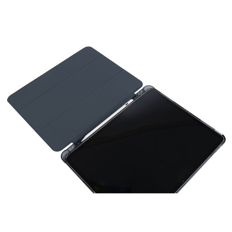 Ultra-protective cover for iPad Pro 13" M4 (2024), part of which is made of recycled plastic. The front cover features a satin-effect material and converts into a convenient stand. The anti-shock rear shell is made from transparent double-injected polycarbonate bordered with TPU for easier iPad insertion. The Satin cover has an internal compartment to store your Apple Pencil and an external holder for charging it. Military standard test approved.