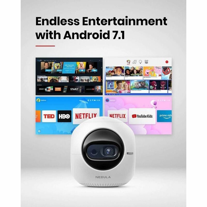 حوّل أي مكان إلى مسرح سينمائي شخصي بإستخدام (إيفي نيبولا أسترو بي ٢ سي يو كي، وايت إريتيشن ١). جهاز العرض صغير الحجم لساعات من الترفيه، ويشتغل البطارية إلى ٢.٥ ساعة.