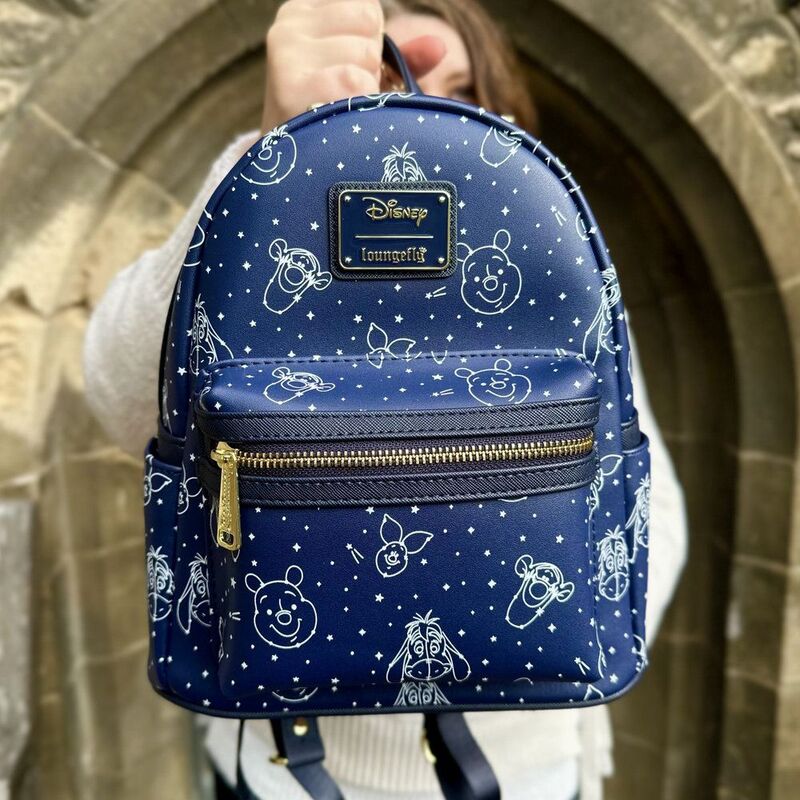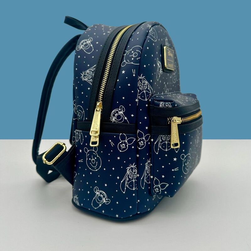Bring a touch of nighttime magic from the Hundred Acre Wood wherever you go! This Loungefly mini backpack features an enchanting navy background decorated with white starry constellations of your favourite friends-Winnie the Pooh, Piglet, Tigger, and Eeyore.