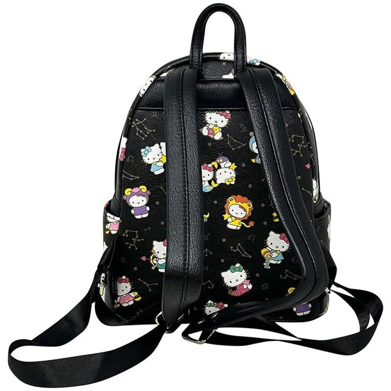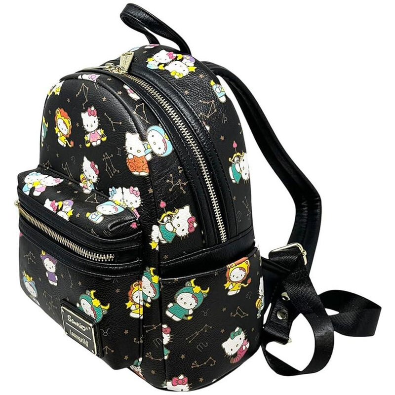 This officially licensed Sanrio x Loungefly mini backpack features a fun all-over print of Hello Kitty surrounded by candies, donuts, bows, and more, giving it whimsical charm