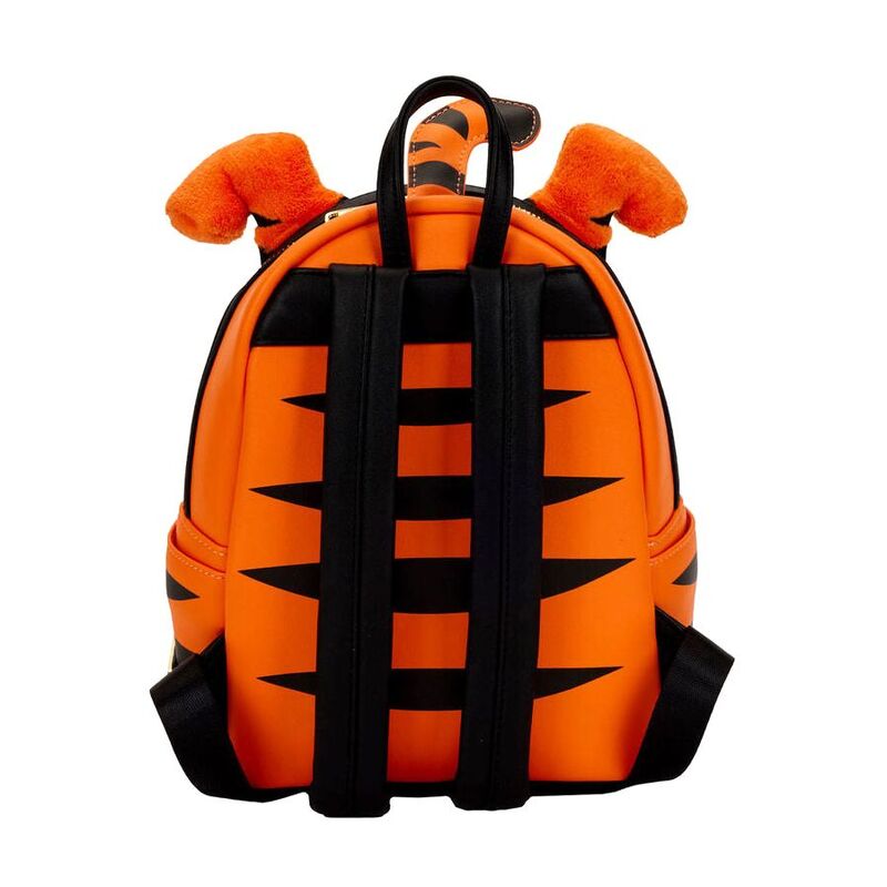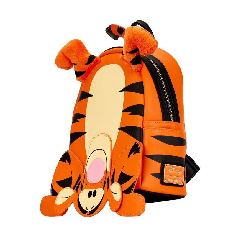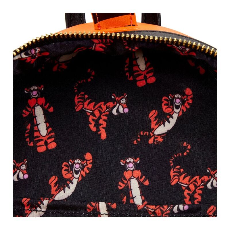 Tigger is head-over-heels excited to join you on your journeys. Take him with you as this Disney Winnie the PoohTigger Cosplay Mini Backpack. On the front, it seems that Tigger has bounced himself upside-down. His tail moves, and his plush feet stick up in the air. The back carries his signature black stripes and orange fur. In fact, the stripes include printed and raised details. This backpack is the perfect accessory for any Disney outfit. Backpack features include vegan leather (polyurethane), adjustable straps, side pockets, shiny gold hardware, and applique, printed, embroidered, and 3-D plush details. Note the coordinating lining.