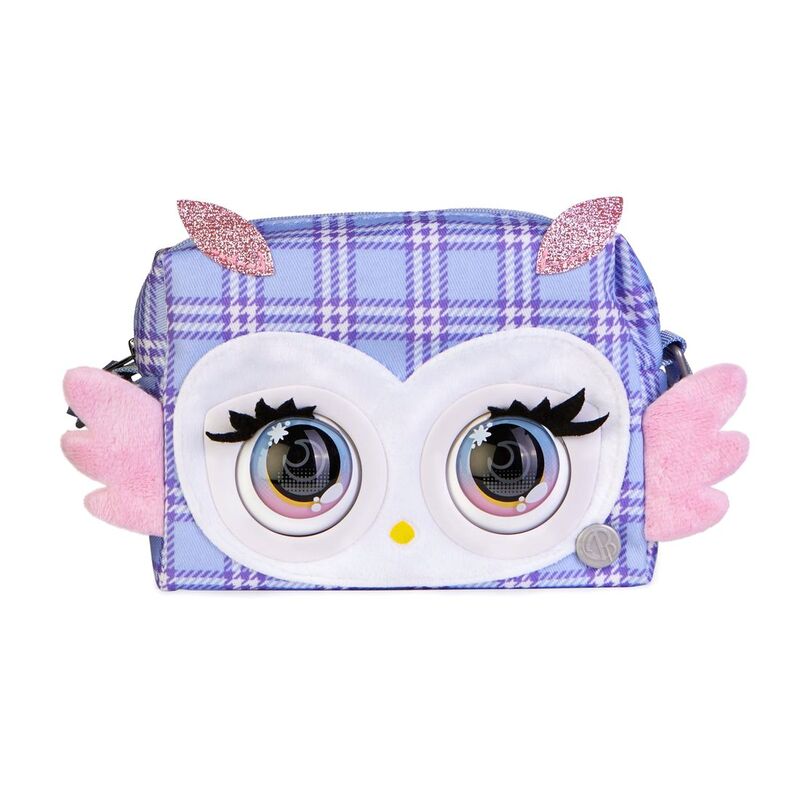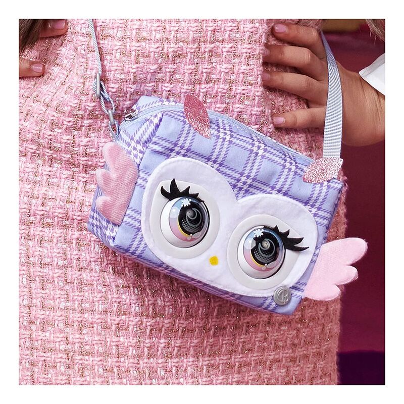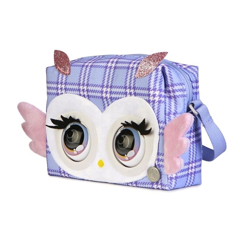 Discover the Purse Pets Print Perfect with its new patterned fabrics: these fabulous, trendy and interactive Purse Pets bags are full of originality! The Purse Pets Owl features lilac tartan print fabric, sparkly ears, fluffy wings, pop art inspired eyes and an adjustable strap.