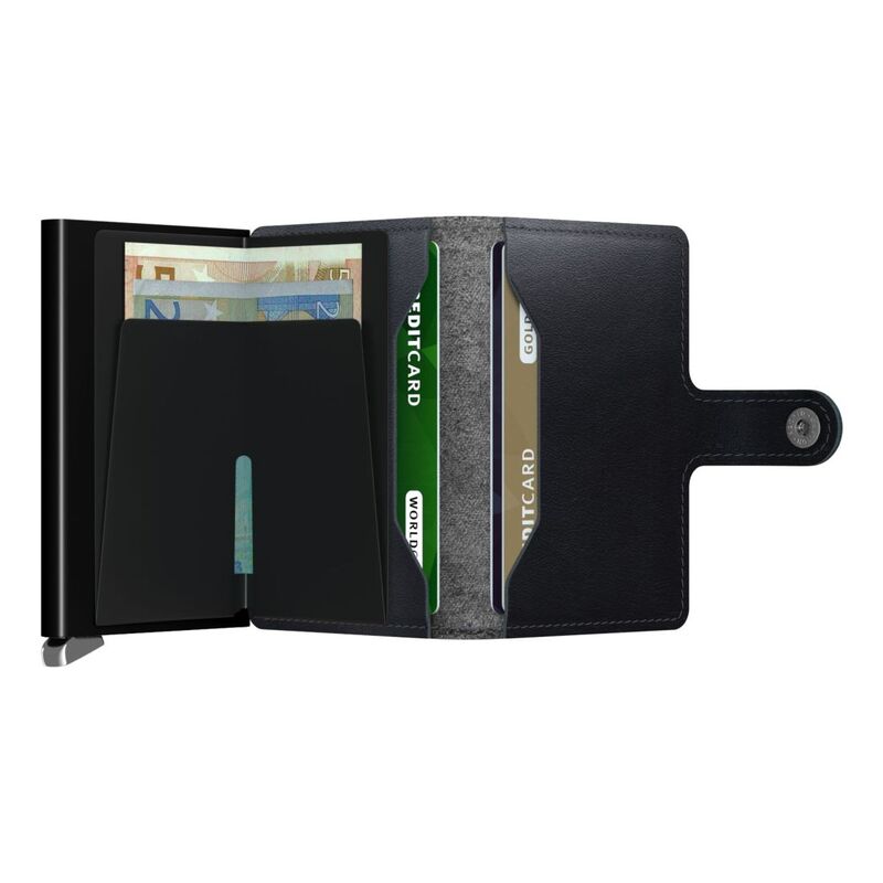 Based on the award winning SECRID Cardprotector, the Miniwallet is both a compact and secure wallet. In addition to the cards in the Cardprotector, the top quality leather interior offers space for a few cards, paper money, receipts, and business cards and some coins.
