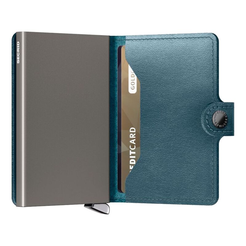 Based on the award winning SECRID Cardprotector, the Miniwallet is both a compact and secure wallet. In addition to the cards in the Cardprotector, the top quality leather interior offers space for a few cards, paper money, receipts, and business cards and some coins.