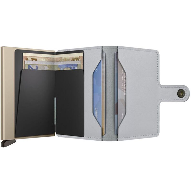 Small in size and surprisingly large in storage capacity, the Miniwallet combines the best of both worlds. The exterior holds banknotes, receipt and cards, while the aluminium Cardprotector allows you to slide out cards with one simple motion and protects them from bending, breaking and unwanted wireless communication.