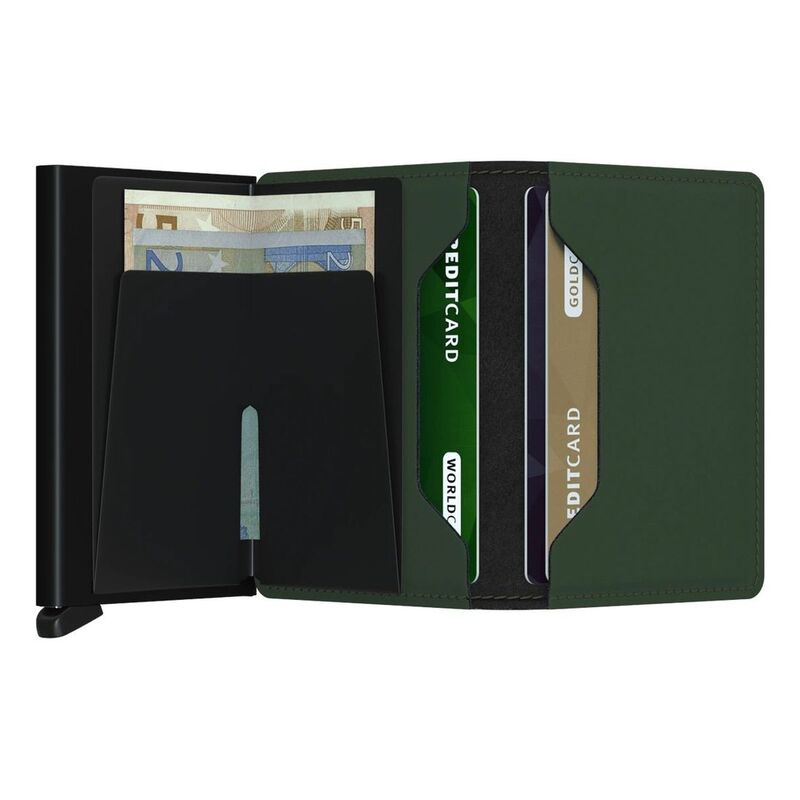 محفظة رفيعة جلد بلون أسود وأخضر مطفي من سيكريد