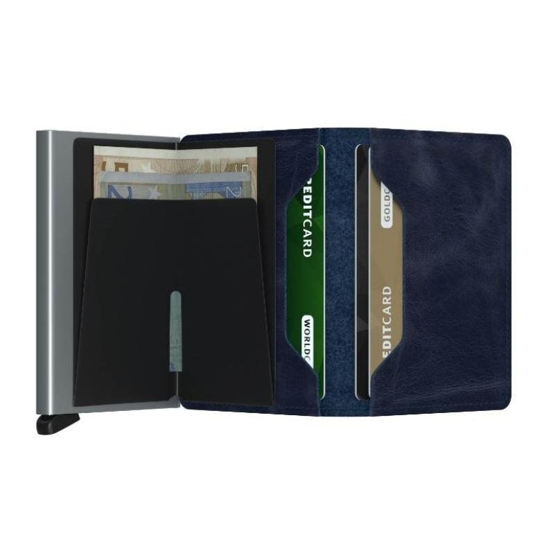 Slimwallet leather is cut wider than the leather of the Miniwallet, providing space for extra cards, bills, business cards, and receipts. The Slimwallet is less suitable for coins.