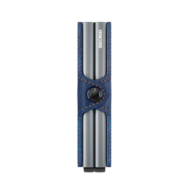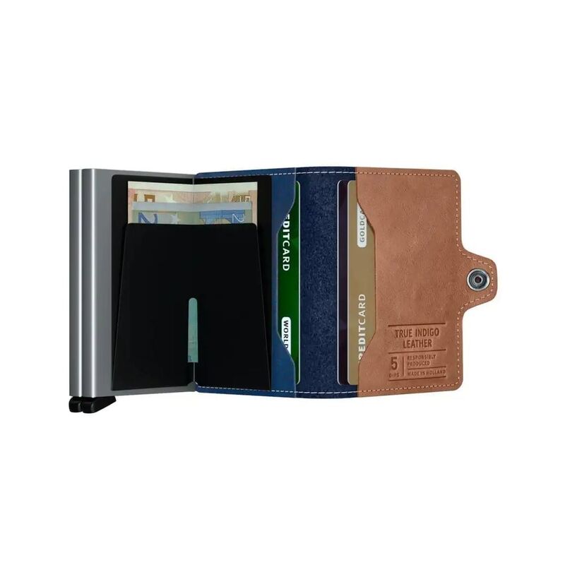 محفظة توين من الجلد 5 باللون الأزرق النيلي والتيتانيوم