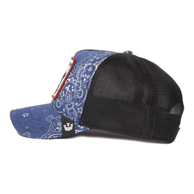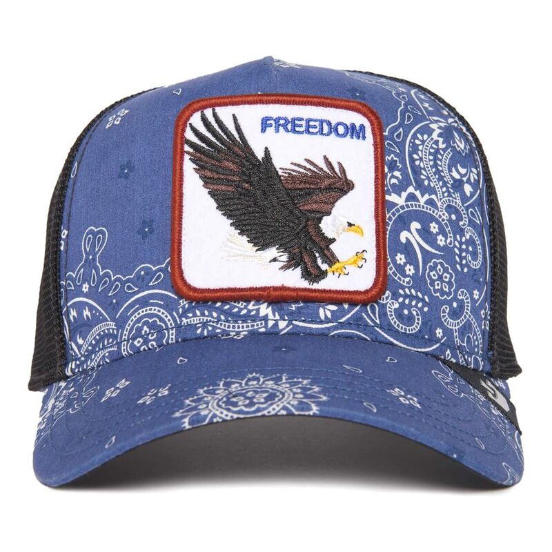 Bring a little freedom into your wardrobe with the Goorin Bros Cap "A the W in a D-Paisley"! The navy blue paisley pattern and the patch with the eagle and the lettering "FREEDOM" give the cap a casual touch. The black mesh ensures breathability on warm days. Freedom for your head!'