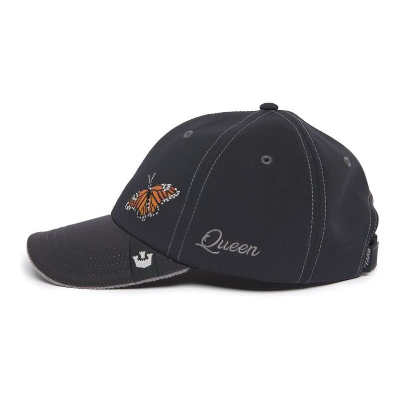The Goorin Bros Track Cap in black with embroidered butterfly and "Queen" lettering is a must-have for all royal fashionistas. With its continuously adjustable size, it is the perfect companion for every day. Show your royal side and feel like a true queen.
