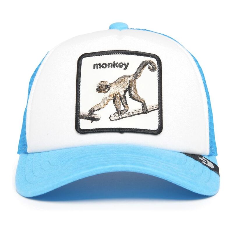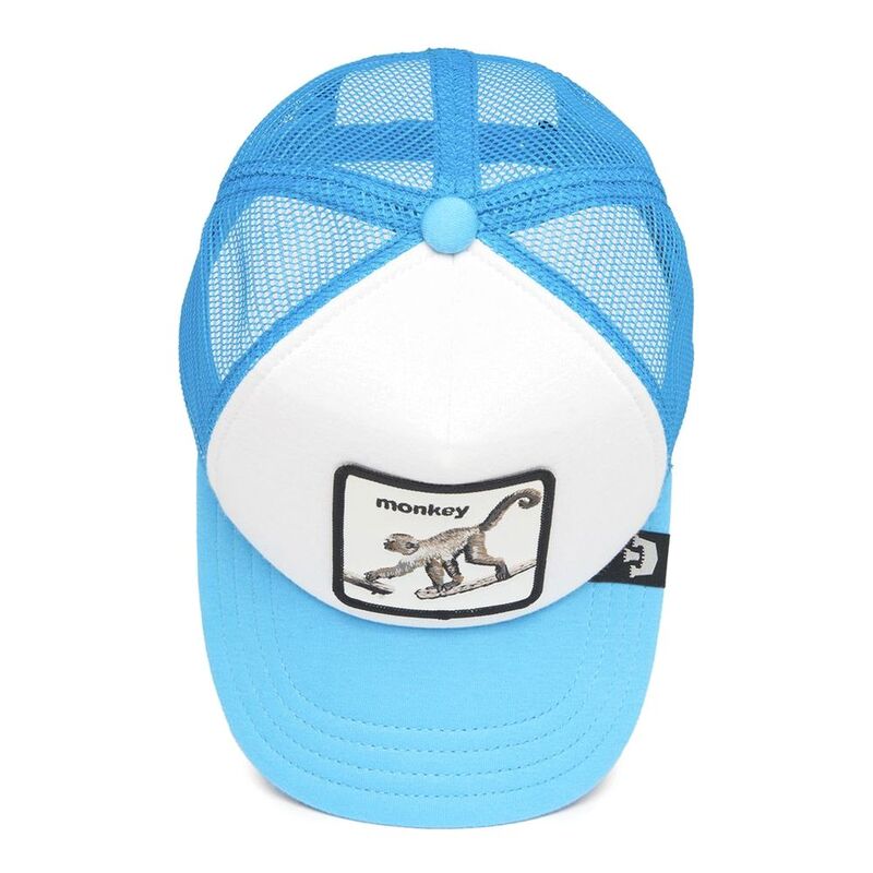 This Goorin children's cap "Mo' Bizness" is a blue cap with a cool white front panel. A casual monkey patch with the word "MONKEY" makes this cap a real eye-catcher. With this stylish accessory, every child becomes the boss in the playground jungle.