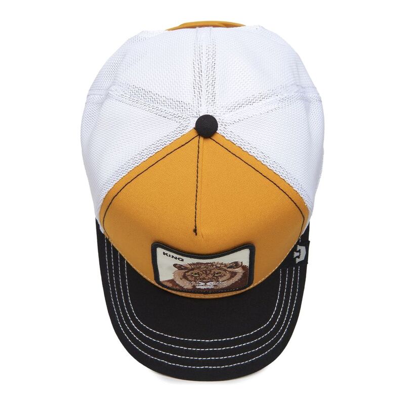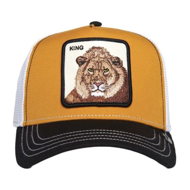 The Goorin Bros. MV Lion Trucker cap in striking yellow is the perfect addition to your casual outfit. Designed for comfort and style, this classic cap with a curved peak is ideal for both everyday activities and special occasions. With a large label on the front featuring a majestic lion and the text "KING", you show that you are a true trendsetter. This cap is not only a fashion accessory, but also a practical protection against the sun.