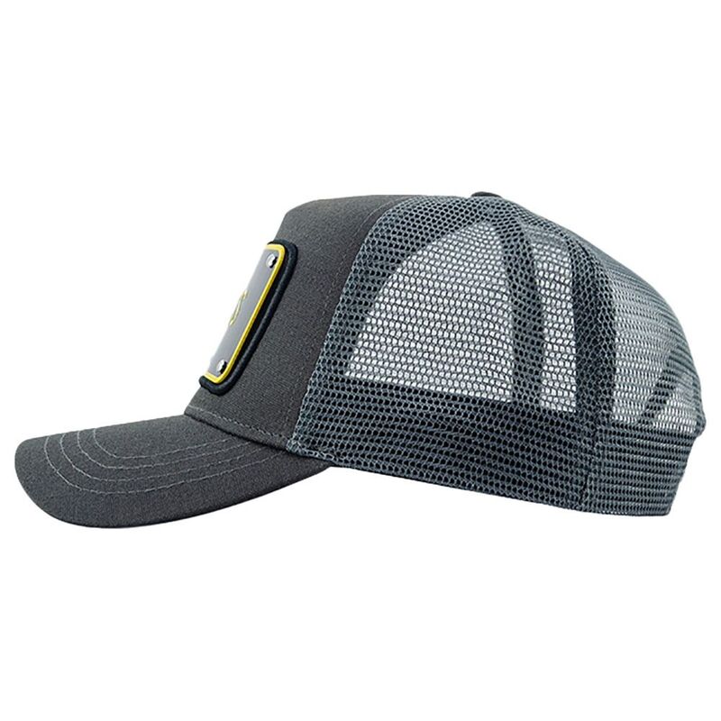 Featuring a miniature aluminium embossed plate printed on black plate with screaming yellow letters. The cap goes in charcoal grey with our unique design giving it that must-have style accessory.