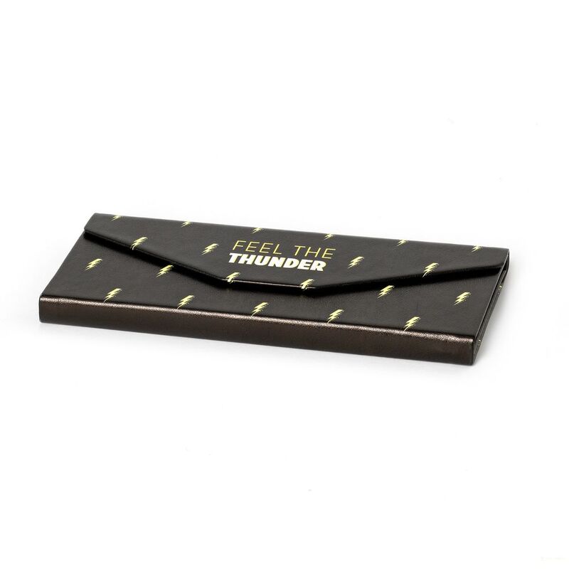 The Legami See You Soon Foldable Glasses Case - Flash is a cute and convenient solution to keeping your glasses safe and protected. With a gold foil finish, magnetic clasp and soft velvet lining, this handy case folds down flat when not in use.