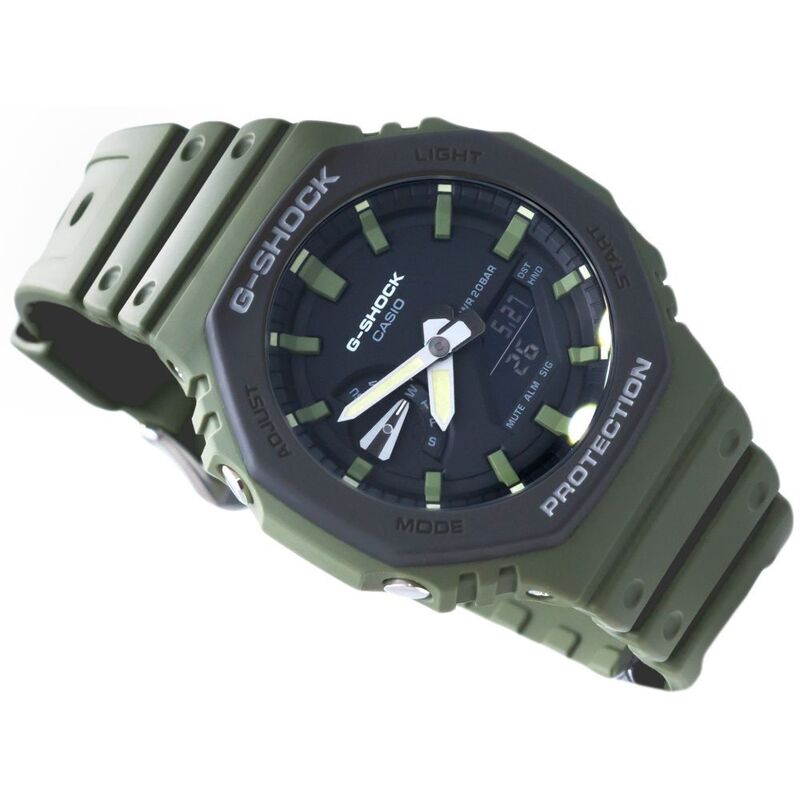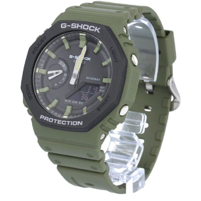 From G-SHOCK, the toughness watches that continue to evolve in search of ultimate strength, this model adorned with utilitarian colors is based on the thin analog-digital combination GA-2100 model. Uses practical utilitarian colors that go well with street fashion for the bezel, dial, and band. The design exudes a casual individuality and goes well with various types of clothing and environment.