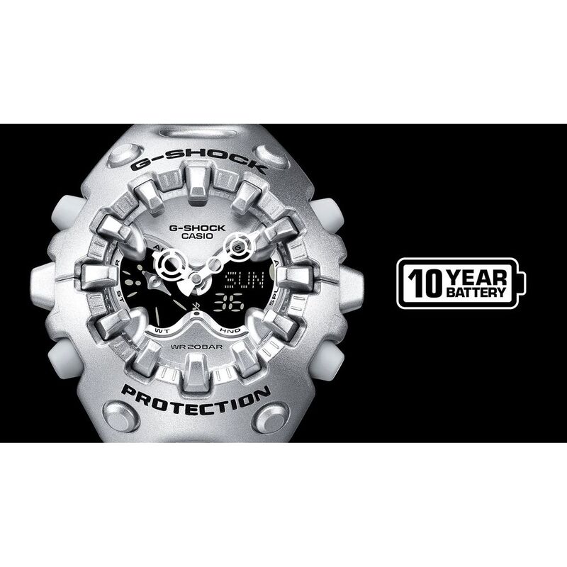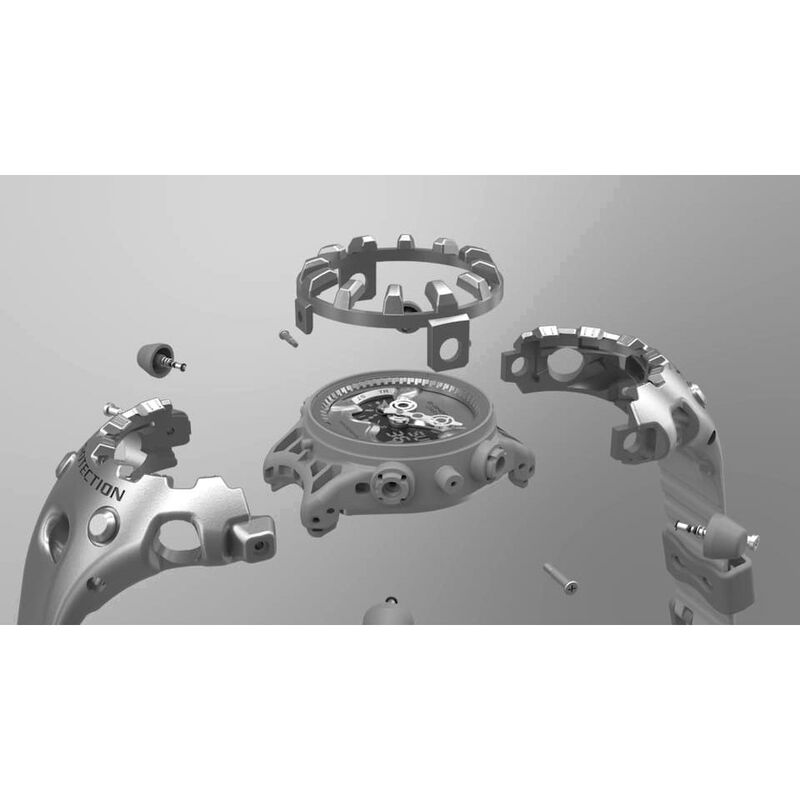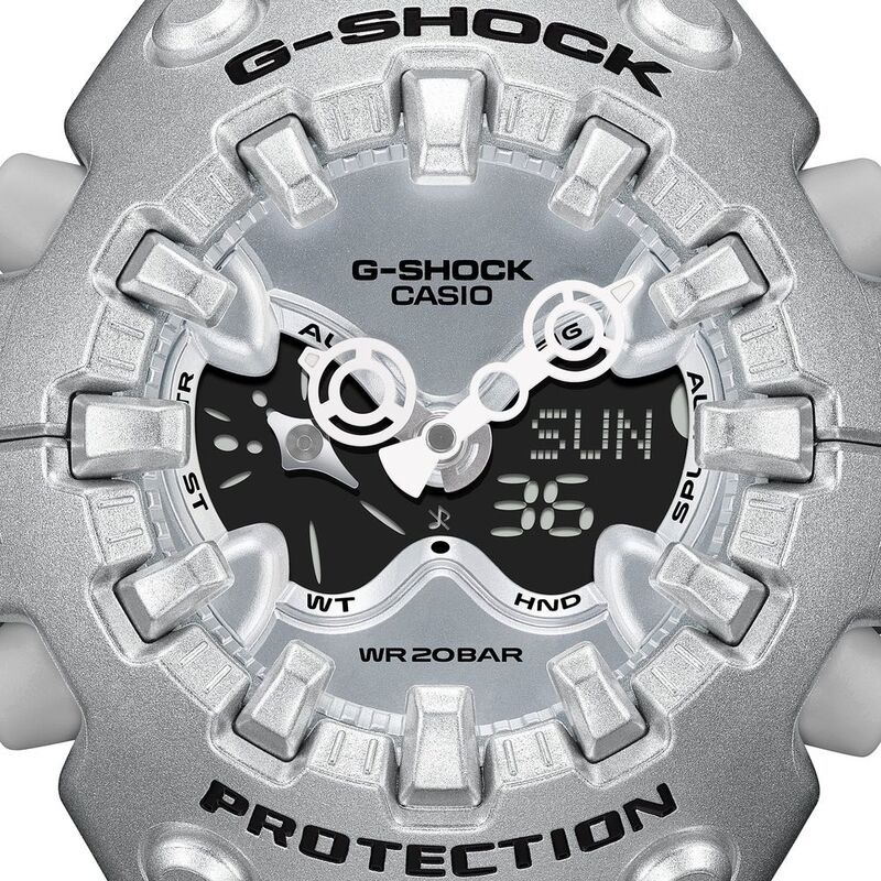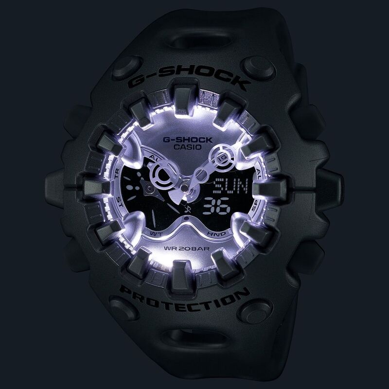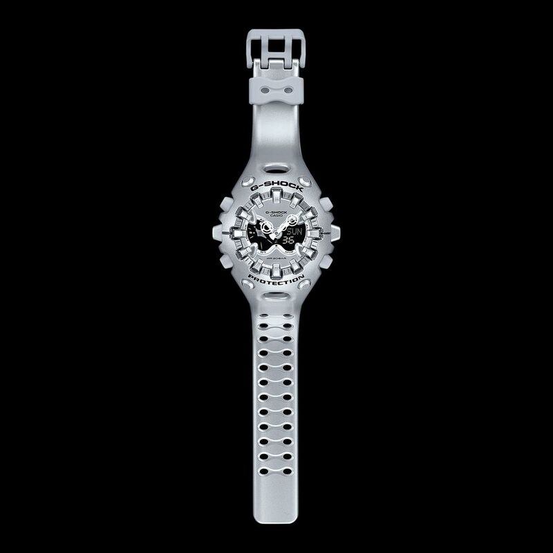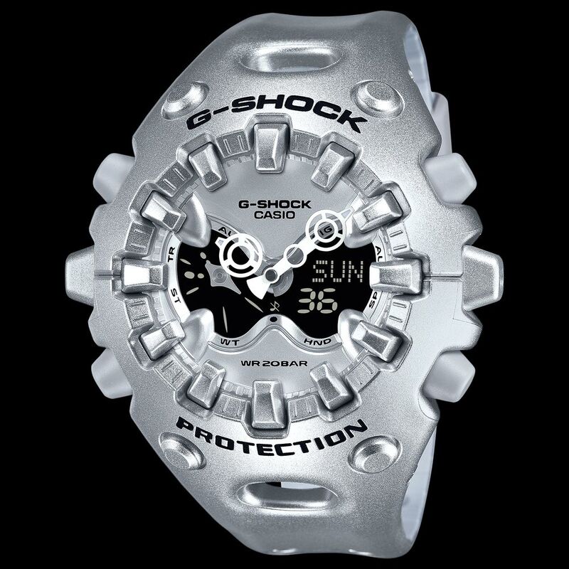 Everyone counts on G-SHOCK for unceasing evolution. But check out this comprehensive reinterpretation, representing the G-SHOCK approach to construction and design that powerfully conveys the brand’s unwavering commitment to toughness. The GA-V01 features an exterior with an organic form bringing together components with sharply defined edges, combined with a large, full-screen LCD topped by a metallic dial with openwork and employing the Shock Release Hand, among other features. With its strikingly innovative and original design concept, the GA-V01 exudes G-SHOCK toughness, restating the brand’s never-ending spirit of challenge and commitment to delivering strength.
