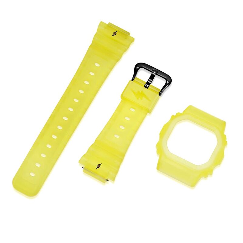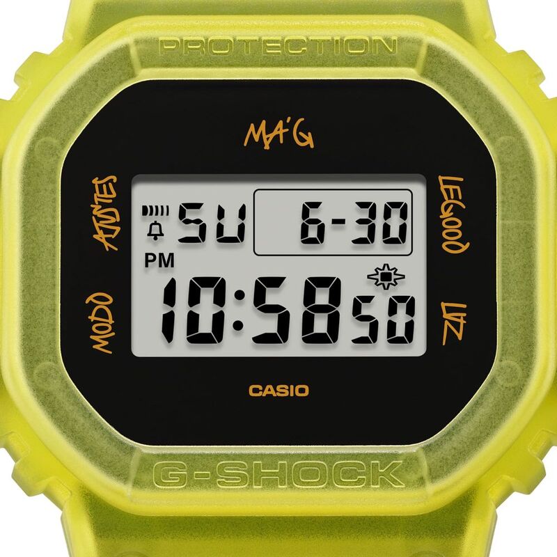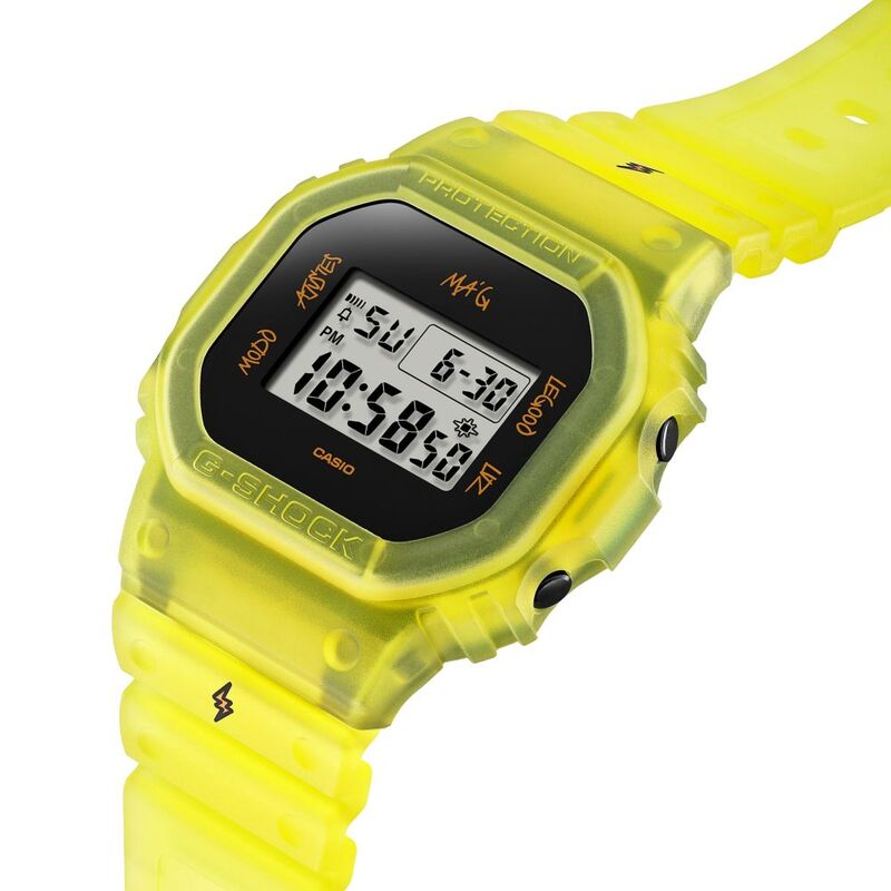 For the collaboration, the design incorporates the text ‘MA’G,’ his phrase for those closest to him, and mode indicators handwritten in Spanish by J Balvin himself, further adding that personal touch and making the MA G-SHOCK the first-ever watch to use Spanish text. The DWE-5600 model comes with interchangeable bezel and band in two different colors translucent matte yellow and classic black, with the watch band, case back, and LED backlight all featuring a logo based on his signature Lightning Bolt. Together with the black translucent packaging, this singular timepiece embodies the pursuit of the ultimate experience, which the worldclass musical artist and G-SHOCK share.