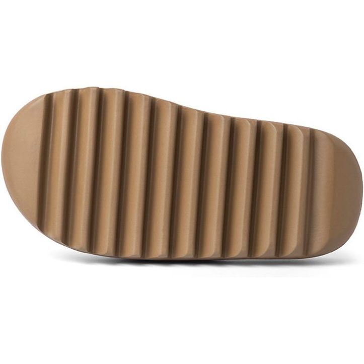 These slides feature a monochromatic light brown hue with an open-toe design and cushy EVA foam construction. Adidas’ three-stripe logo on the footbed and a Yeezy wordmark on the upper lining provide subtle branding, while the outsole’s deep horizontal grooves ensure superior cushioning and enhanced traction.
