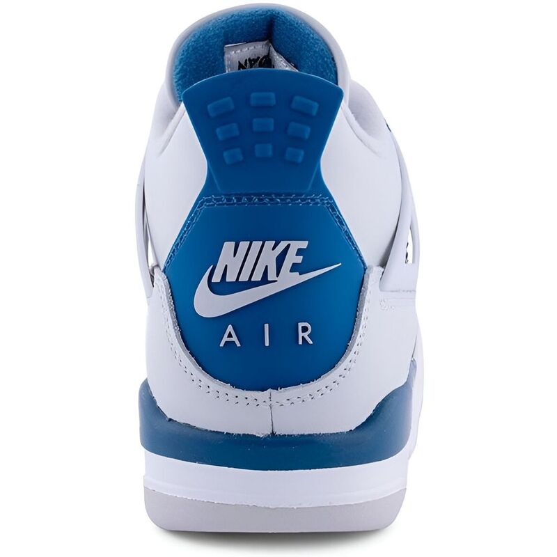 The Jordan 4 Retro Military Blue revives a cherished OG colorway of this iconic silhouette. Smooth off-white leather forms the upper with quarter panel netting and a tonal nubuck forefoot overlay. A striking blue Jumpman logo completes the unique design, matching the molded eyelets and a back tab adorned with Nike Air branding.