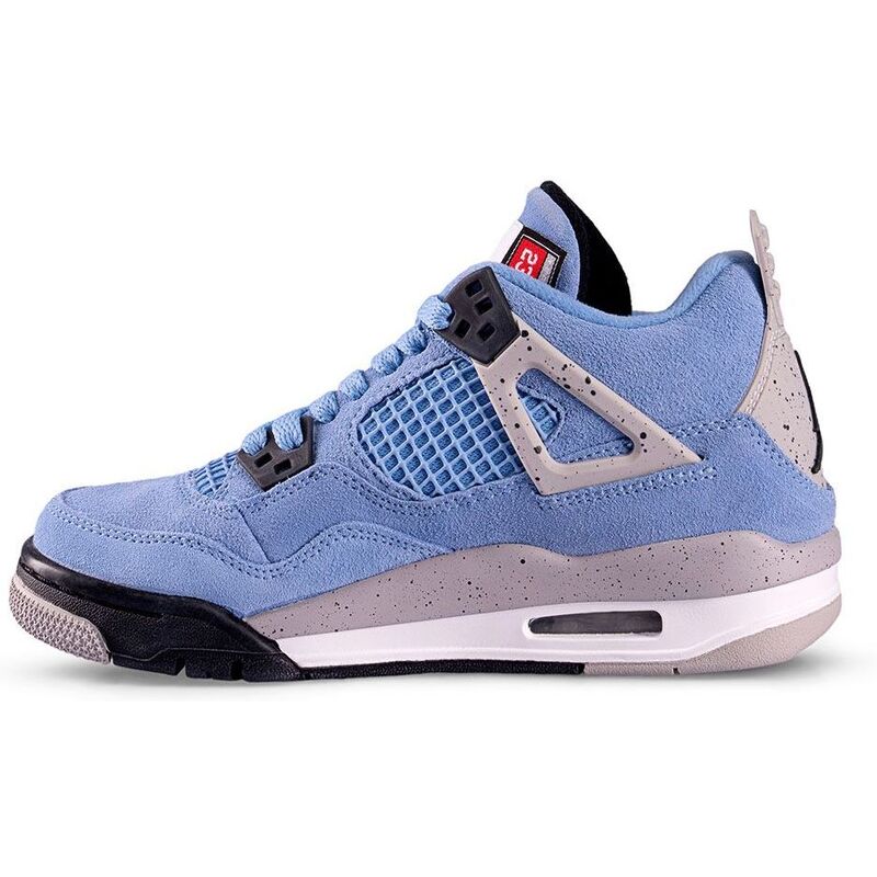 These iconic low-tops are beautifully crafted from university blue and tech grey leather panels, embodying the perfect blend of style and sport. With a round toe, flat rubber sole, and front lace-up fastening, these ankle-length sneakers ensure a snug and comfortable fit, while the mesh panelling and signature Jumpman motif enhance functionality and flair.