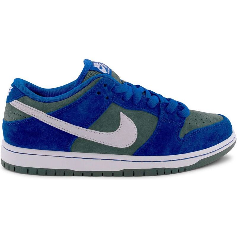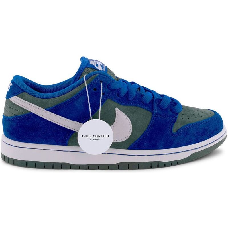 These sneakers are crafted from premium suede, featuring a vintage green toe cap, tongue, side panels, and heel collar perfectly complementing the Deep Royal Blue overlays. A sail-colored suede Swoosh adds an elegant contrast, while the sail midsole with blue stitching and vintage green rubber outsole completes the look with finesse.