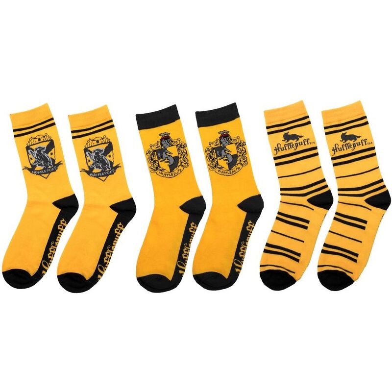 Show your Hufflepuff pride from head to toe with these 3 pairs of socks featuring Hufflepuff emblems and the recognisable yellow and black colors. Soft and comfy, these high-quality themed socks are a fun accessory to add to your every day outfit!As a part of our engagement, this product comes with plastic-free green packaging.