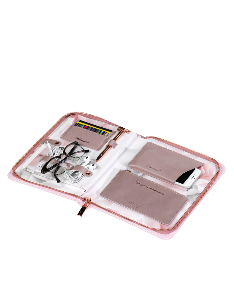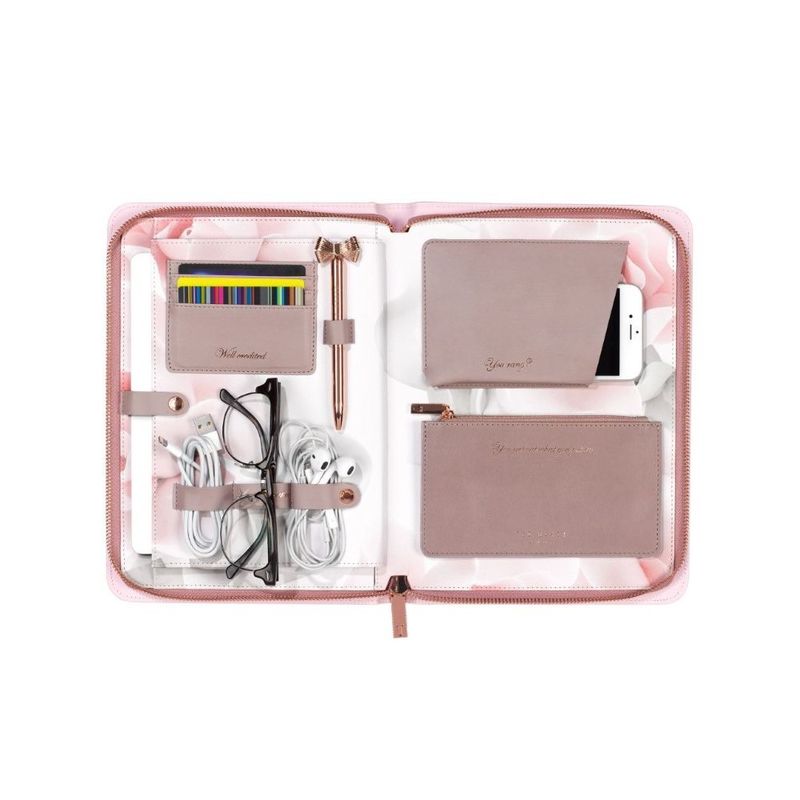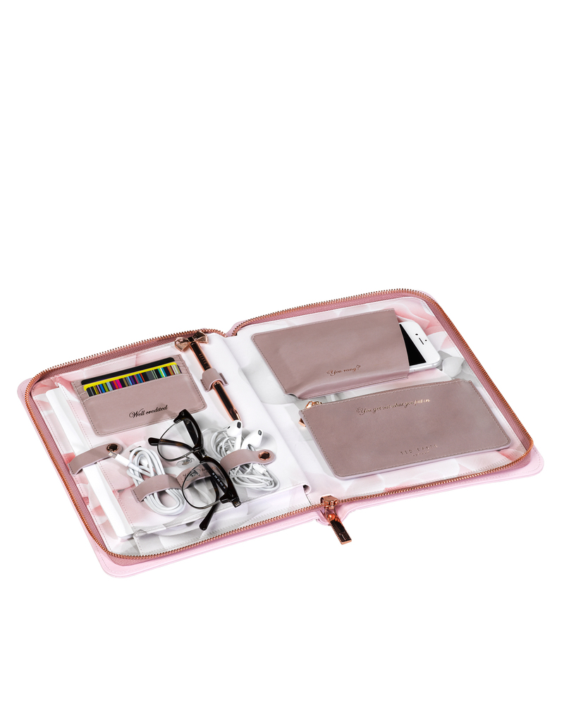 Comprising 6 features - a pocket for a tablet/journal, 4 bank card pockets, a pen pocket, 3 cable tidies, a phone pocket and removable zip pouch, this compact case has everything you need to keep your important items safe wherever you go