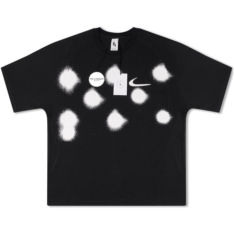 This t-shirt is part of an exclusive eight-piece collection, symbolizing the prestigious collaboration between two distinguished luxury brands. It’s adorned with artistic white spray dots to embody the spirit of luxury streetwear on a black backdrop, complemented by the iconic Nike Swoosh placed on the back and left chest with great precision.