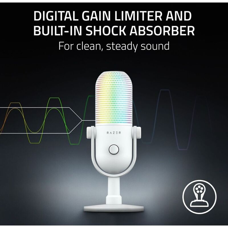 Be seen and heard on a new level with the Razer Seiren V3 Chroma—a pro-grade USB mic with RGB lighting customization that outshines all others. Featuring stream reactive lighting and a multi-function tap-to-mute sensor, get the control, clarity, and flair you need for gaming, streaming, and chatting.