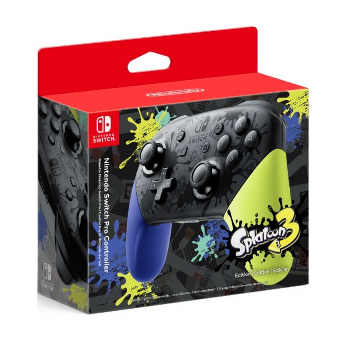 Nintendo Switch Pro Controller featuring a special Splatoon 3 design.