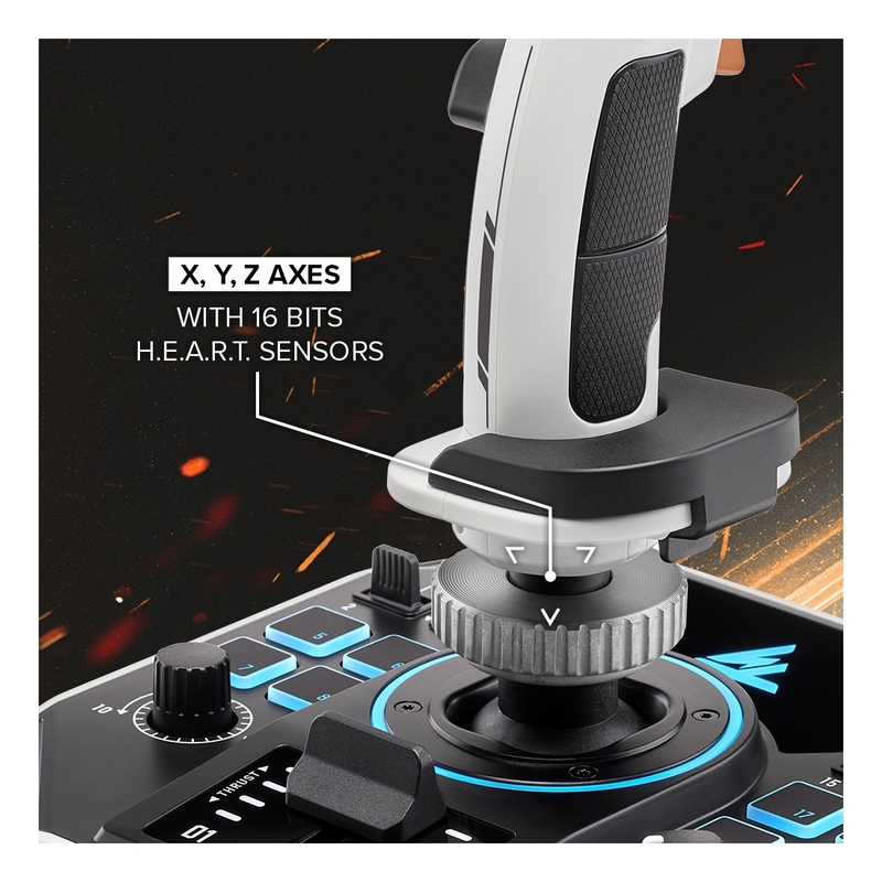 • AXIS ACCURACY: The Sol-R 2 HOSAS Space Sim Duo has 6 axes of movement (X, Y, and Z) with H.E.A.R.T. (HallEffect AccuRate Technology™) 16-bit accuracy, as well as 10 virtual axes (thumbwheels, ministicks, throttles). That level of precision makes HOSAS the perfect joystick for your journey through space.