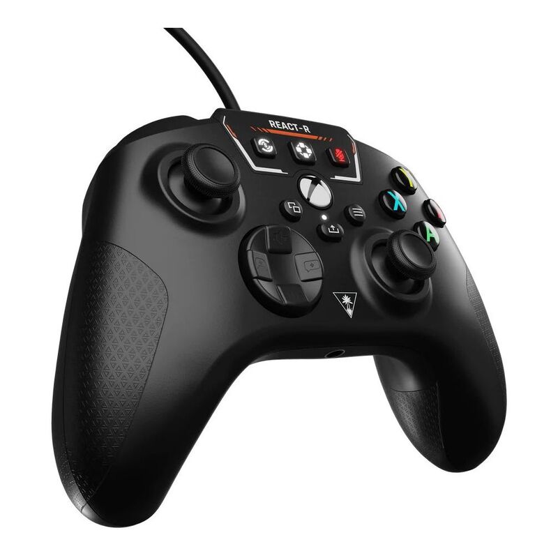 React faster with the Turtle Beach REACT-R Controller, officially licensed by Microsoft for Xbox Series X, Xbox Series S, Xbox One & Window PCs. Plug in any 3.5mm headset and instantly upgrade your audio with quick-access controls for Superhuman Hearing, game & chat volume balance, and mic mute. Play longer and stay in control thanks to an ergonomic handle shape and textured grips, handles and triggers. Two mappable quick-action buttons on the backside of the controller let you customize your controls for quicker reactions. Feel the rumble of explosions, or the recoil of gunshots with vibration feedback in the handles.