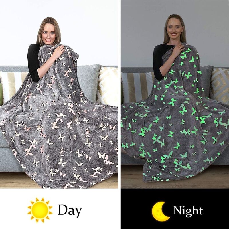 - Kanguru Rolled Plaid|Fleece Blanket, Glow in the Dark, Ultra Soft Comfy & Warm, LightWeight, Machine Washable, for Adults Men Women Teenagers size 130 x 150cm - Glow Butterflies