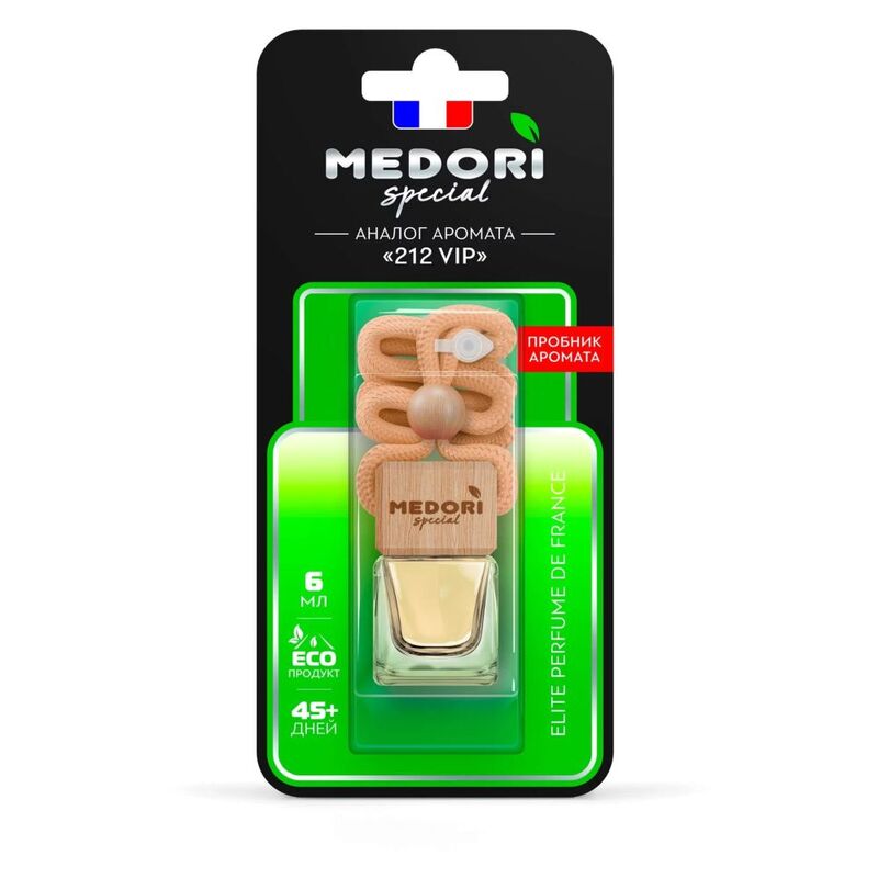 A hanging car air freshener for the rearview mirror in a laconic and stylish bottle. It can be hung at any length with the help of the string not to obstruct the driver's view. This car perfume is made of fragrance essences from France and free of alcohol or synthetic materials. The line of air fresheners includes perfumed scents for women and men, fantasy scents and classic scents. A car perfume will be a nice gift for any occasion. Medori car scents are good for any season. The car air freshener can be used as a home perfume, in a wardrobe or as an aroma diffuser for a bathroom or a room. Medori car air fresheners are totally ecologic.