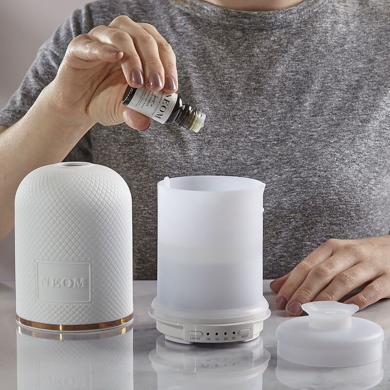 Whatever your wellbeing need, the NEOM Wellbeing Pod works at the touch of a button, helping you achieve better sleep, less stress, a mood lift or more energy through our 100% natural essential oil blends.