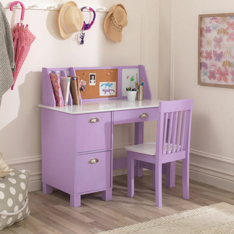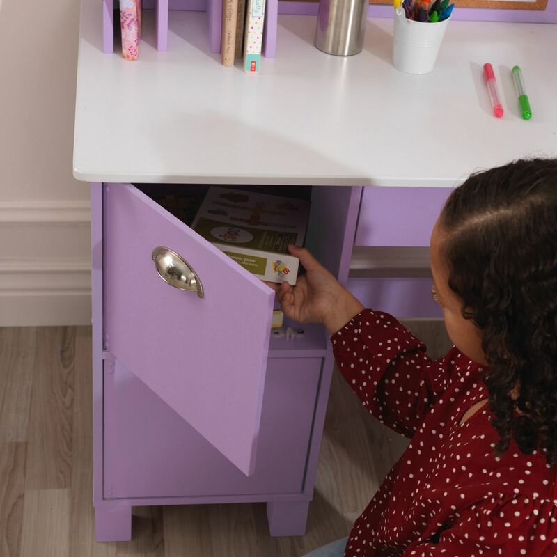 The KidKraft Study Desk with Chair gives young students a perfect workspace for finishing homework, studying or working on craft projects. A bulletin board surface gives them a place to pin pictures, drawings and important notes. Two cabinets and a pencil drawer offer plenty of storage to keep kids organized.