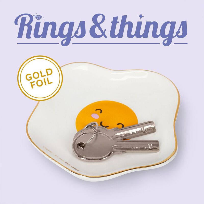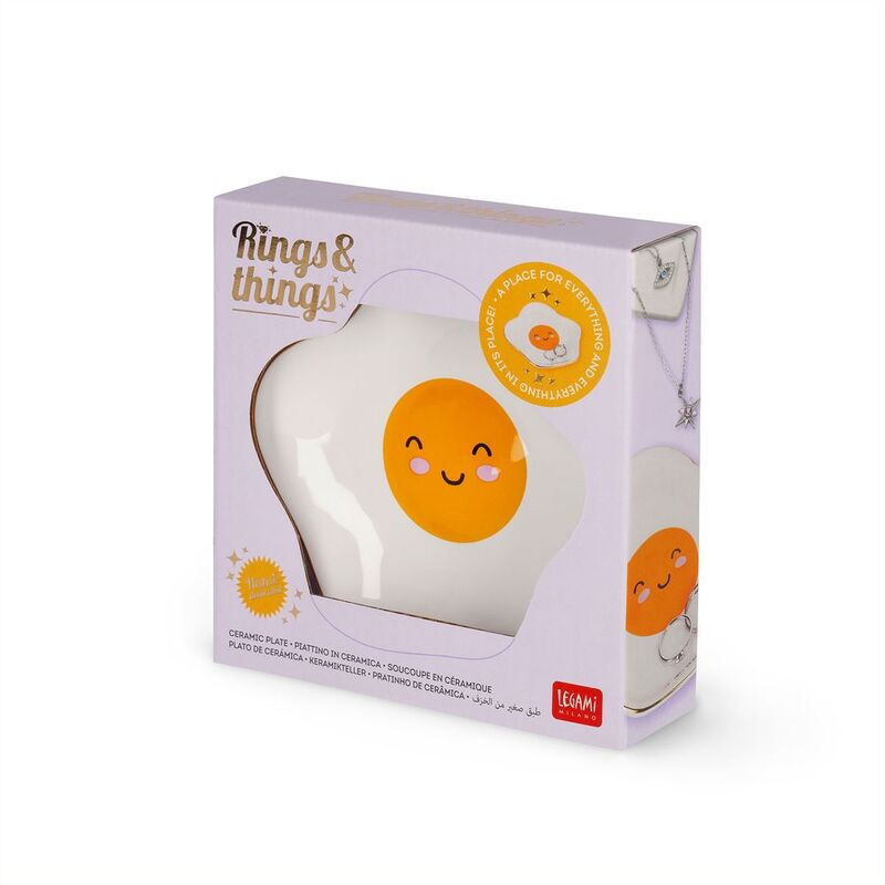 If the first thing you do when you get home is remove your jewellery and empty coins from your pockets, it’s good to know they’ll still be there in the morning. The Egg themed Rings & Things Ceramic Plate by Legami is the most original and unique pocket emptier on the web. Its hand-finished details and gold leaf decorations will add a touch of class to your hall, bathroom or bedroom.