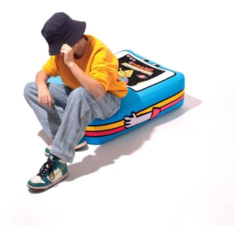 This inflatable booster cushion with a decidedly pop and quirky look is a hybrid object, half decoration, half cushion. Whether to relax or just decorate, this giant object with a unique character will add a note of color and cheerfulness to your living space or during an event. Easily inflates and deflates manually or with an air pump. This cushion is not a buoy, This cushion is not a buoy.