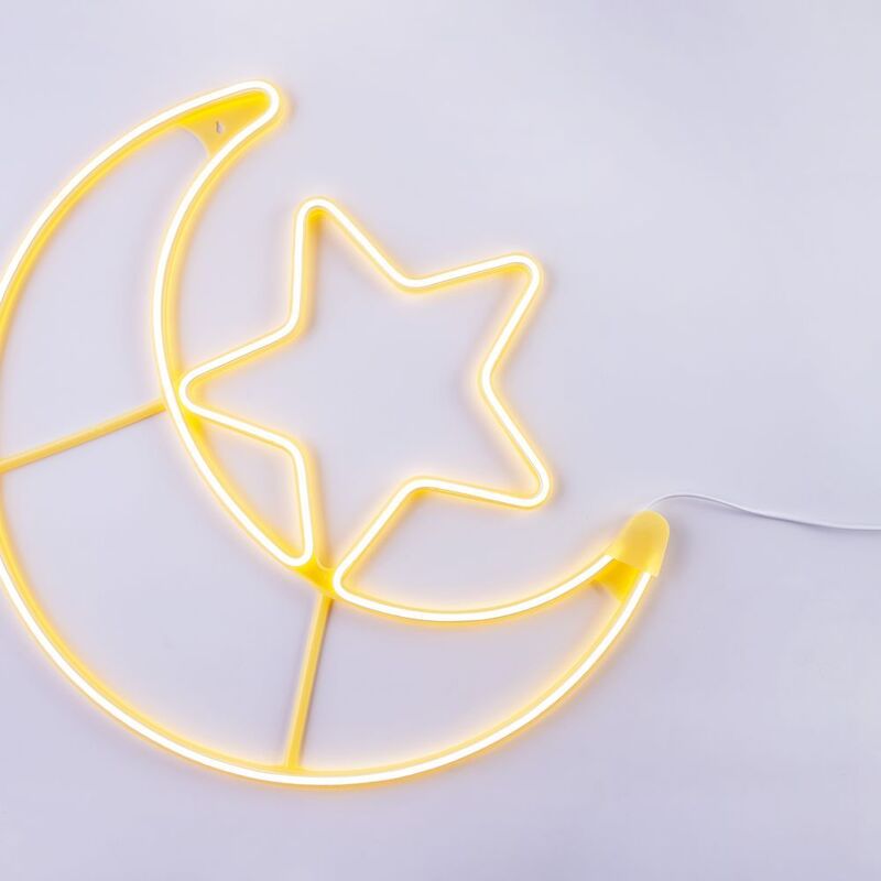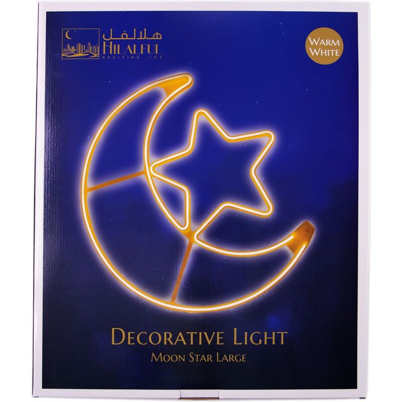 Our best seller, this HilalFul Crescent and Star shaped LED light is the perfect decoration to create a festive atmosphere and to welcome the Holy month of Ramadan and Eid in your home. Makes a great gift for family and friends at Ramadan and Eid. This model has been upgraded with a 1.5 meter cable and a 3 pin plug (UK/UAE) so just plug in and power! Measures 60 cm x 51 cm x 1.7 cm.Can be used indoors or outdoors, it emits a warm white light.